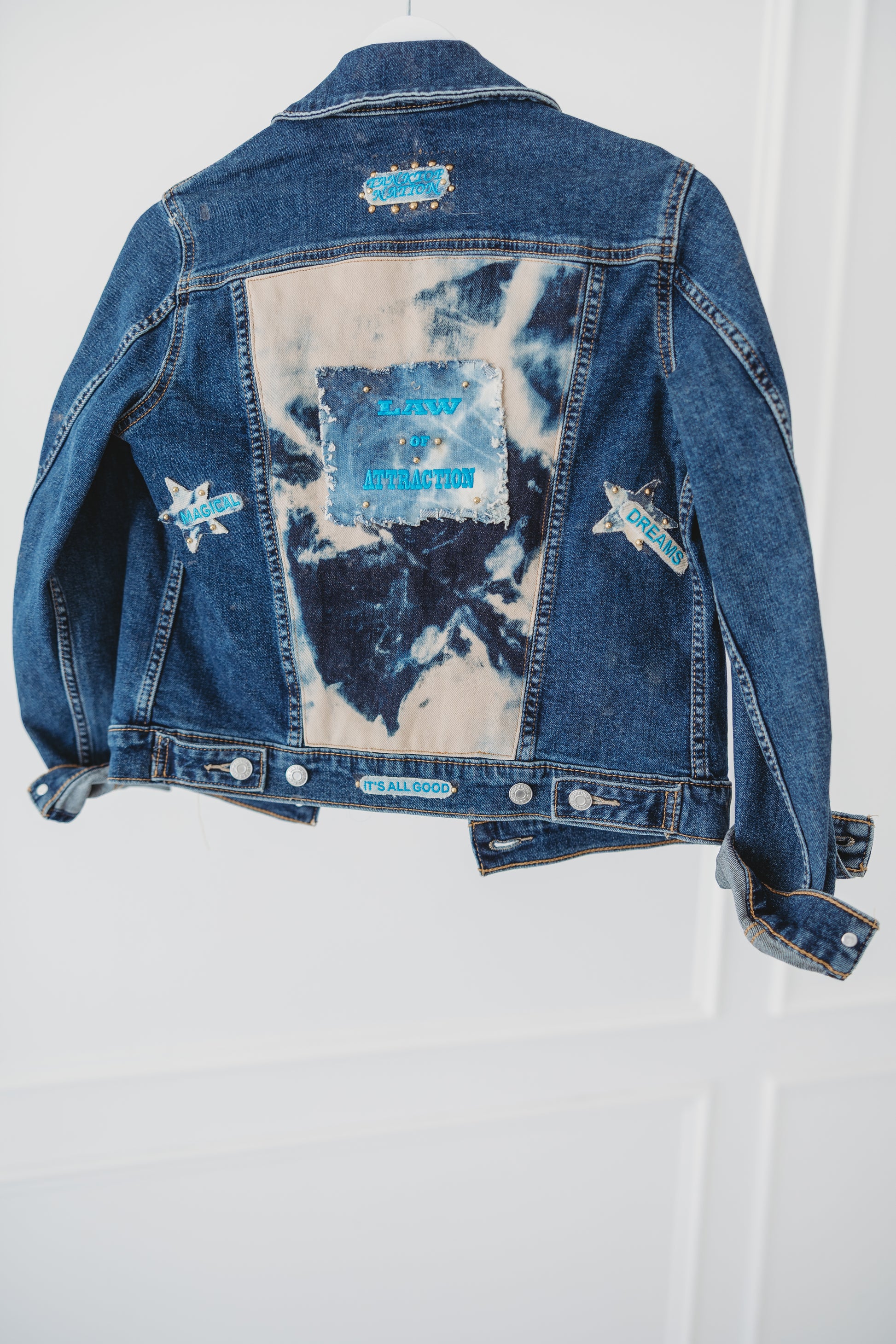 The Law of Attraction Jacket is designed for those who move with intention and trust the power of their vision. Crafted from structured medium-wash denim with a custom bleached back panel, this jacket blends timeless design with modern manifestation energy.